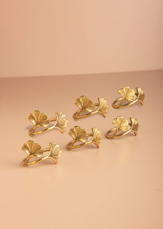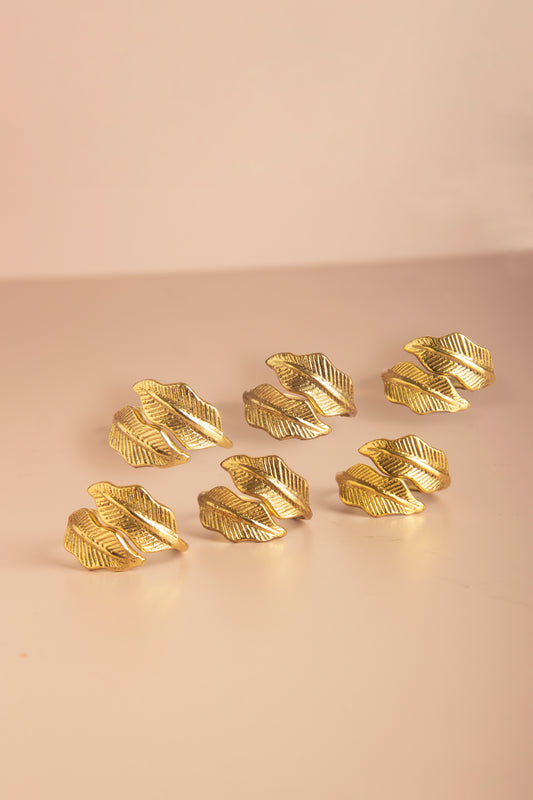 Golden Brass Leaf Napkin Ring - Set of 6