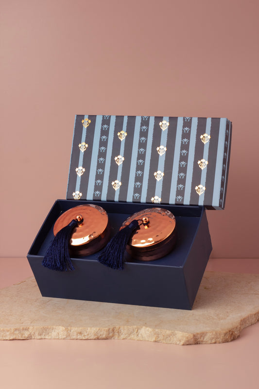 Gold Hammered Scented Candle with Tassel - Set of 2
