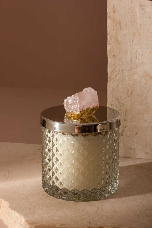 Diamond Glass Scented Candle with a Rose Quartz Lid