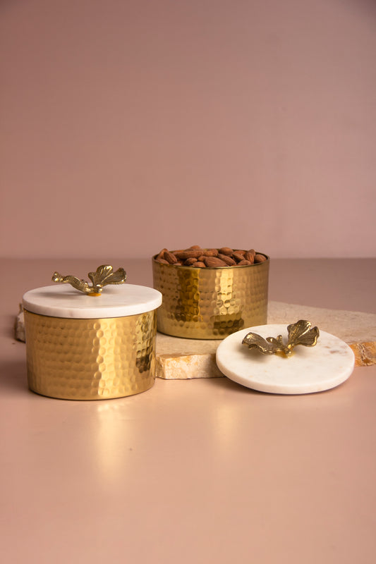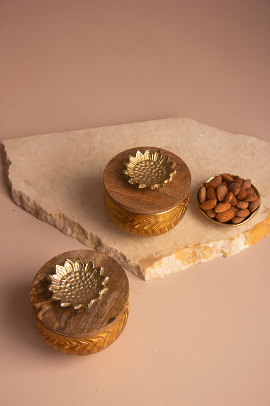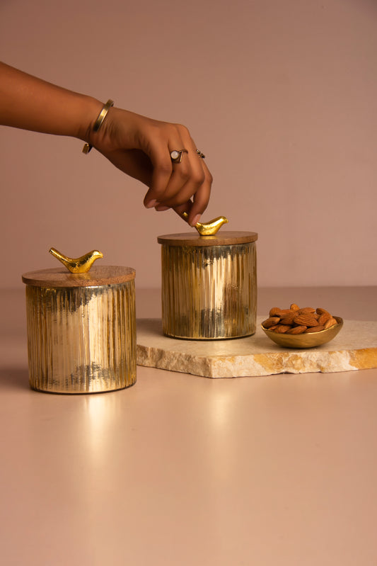 Golden Bloom Jar with Wooden lid - Set of 2