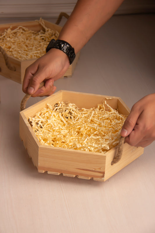 Pinewood Hexagon Basket with Wooden Handle - 10 Inch Pack of 1