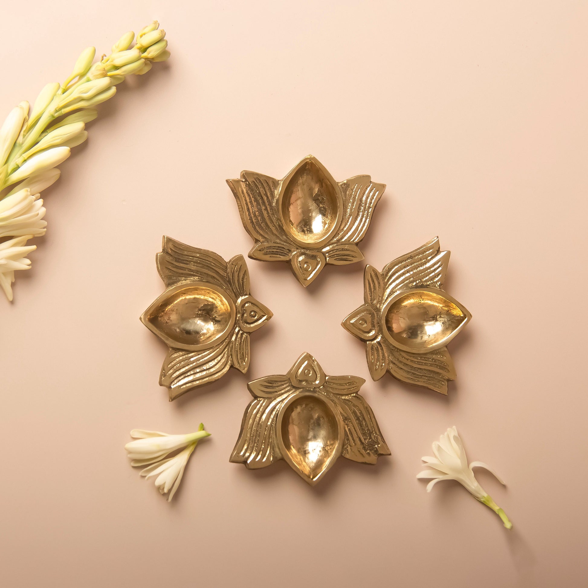 IncludesĀ Set of 2 Brass Diyas; Set of 4 Brass Diyas