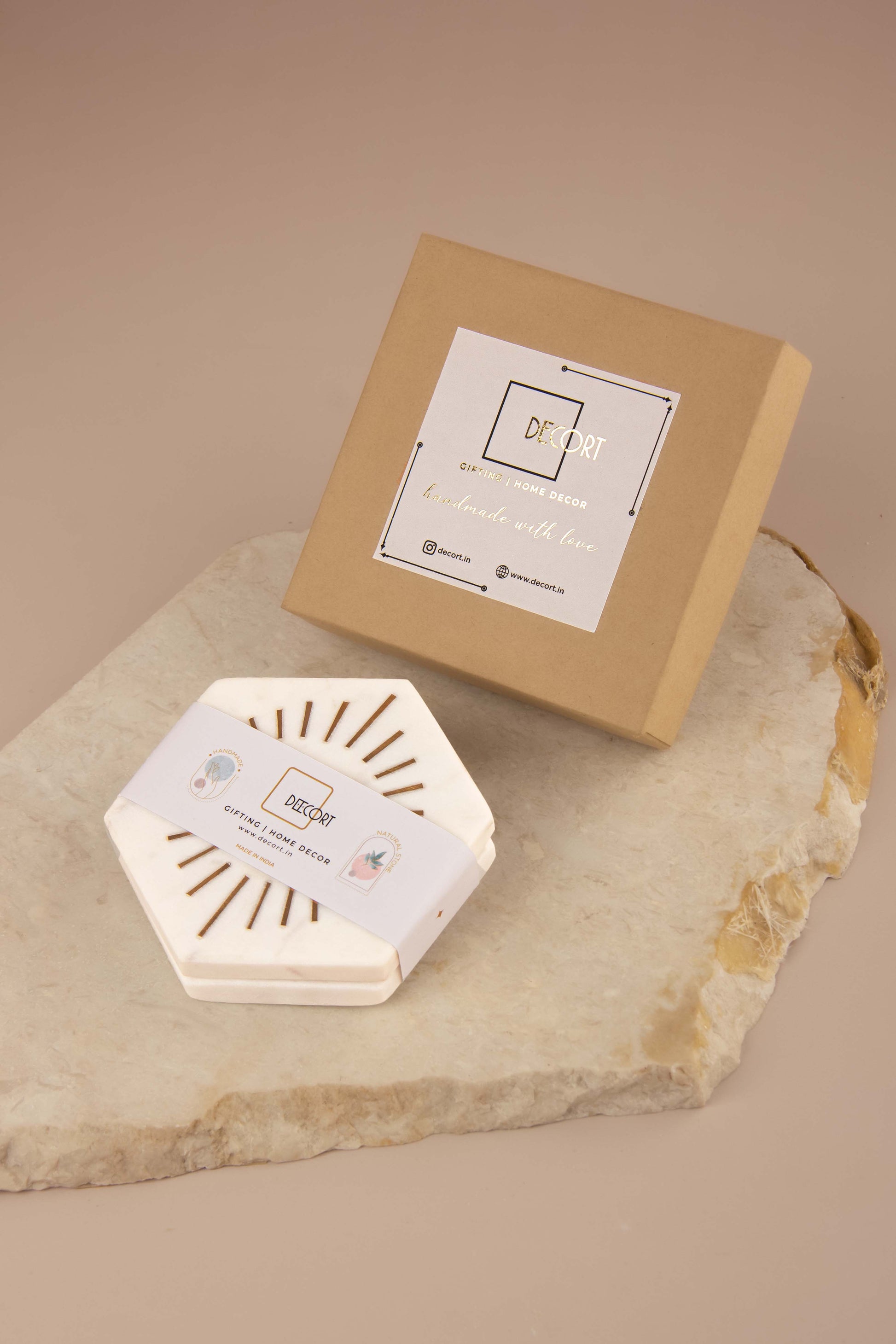 You may also pair these coasters with our marble urli candle, prisms or napkin rings and create a zen ambience in your space.