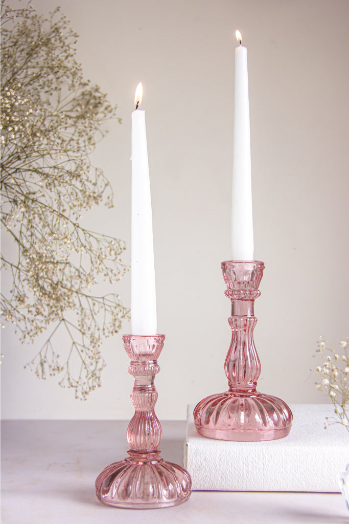 Pumpkin Deep Blush Glass Candle Stands – Set of 2