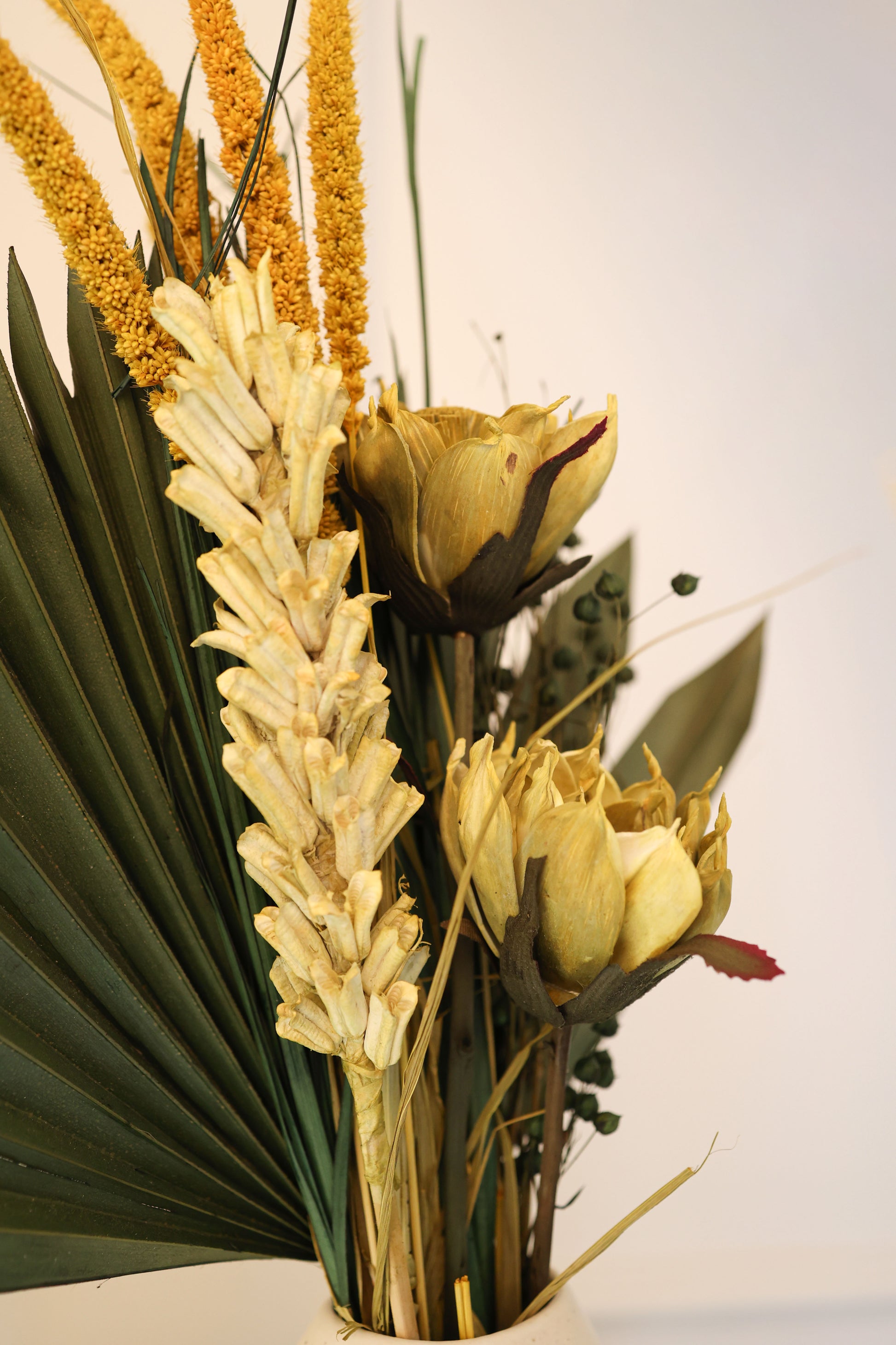 Description Bring a burst of vibrant energy with our eye-catching Sunny Daze Dried Bouquet. This arrangement adds a lively, sunny touch to any room. Ideal for small vases or as a cheerful gift, these naturally preserved flowers bring a fresh and invigorating charm to your décor.